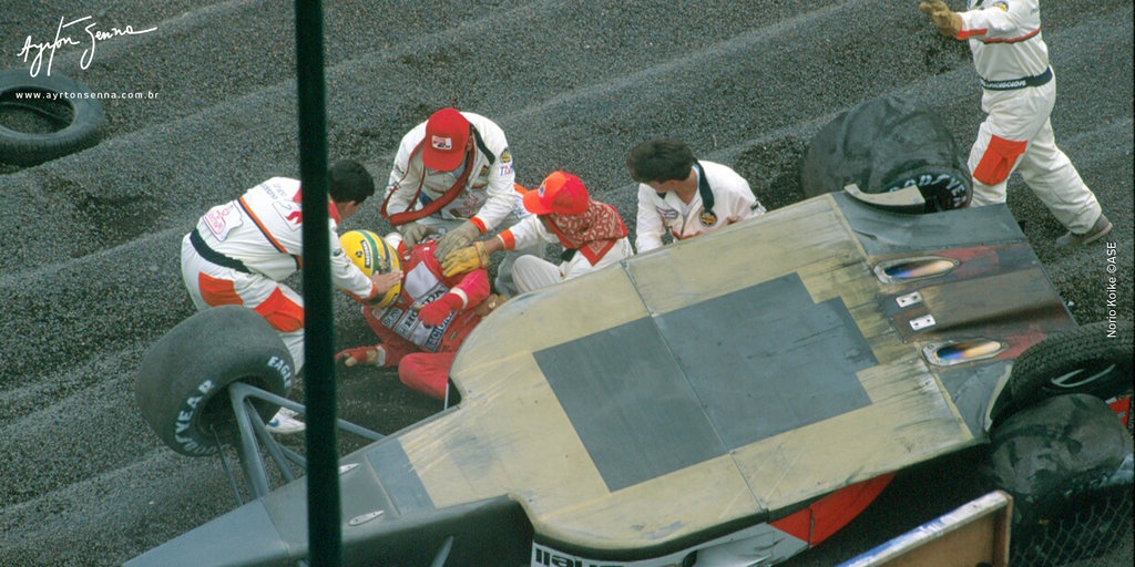 Blown diffuser on Senna McLaren-Honda MP4/7A during Mexico GP 1991. He suffered a big accident at the high speed Peraltada corner during qualifying, in which the car rolled and landed upside down) but thankfully he emerged unscathed. |