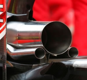 Although, as it is proven that any exhaust affects the aerodynamics, forbidding the diffuser blowing in area around diffuser would make all exhausts illegal. This effect on the aerodynamics will probably have been a reason for Ferrari to abandon the regular type of exhausts, and start blowing the exhaust air over the rear top of the car, before the air has passed the rear wing. Raising the exhaust pipes needed heat shielding of the aerodynamic parts of the car. Due to the hot air passing by the rear wing, it would become very fragile if it wasn’t protected against such high air temperatures.