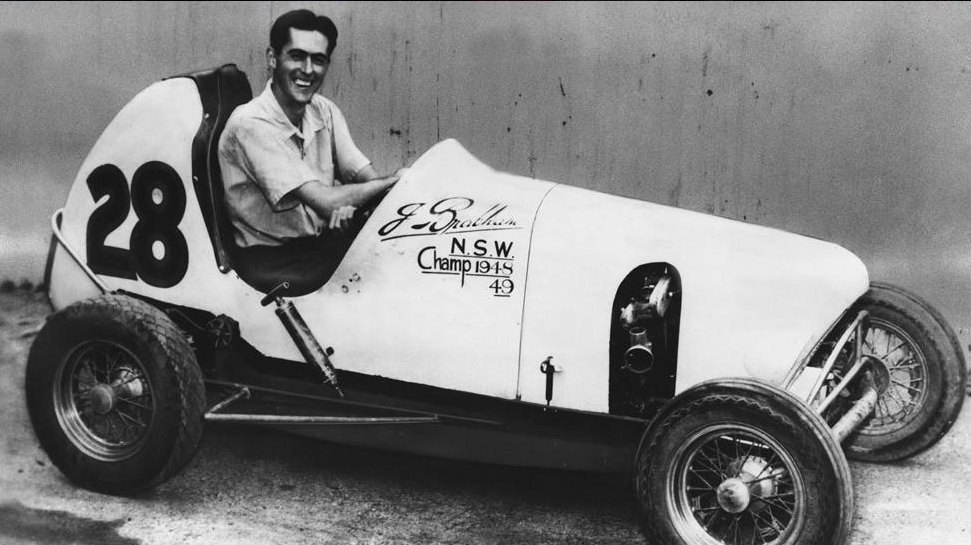 The grandson of a Londoner from the Cockney area of East London who emigrated to Australia in 1885 and opened a grocer’s shop in Adelaide, John Arthur Brabham, nicknamed “Black Jack”, was born on 2 April 1926 in Hurstville, a southern suburb of Sydney, Australia. His father who owned a grocery store just outside of Sydney was a keen motorist who taught Brabham how to drive a car at the age of 12. At 15 Brabham left school and got a job in a local garage while spending his evenings studying engineering technical college at Kogarah Tech, preferring basic metalwork, carpentry and technical drawing. Soon he started his own business selling motorbikes, which he bought and repaired for sale, using his parents’ back veranda as his workshop.